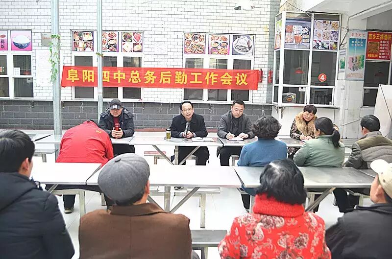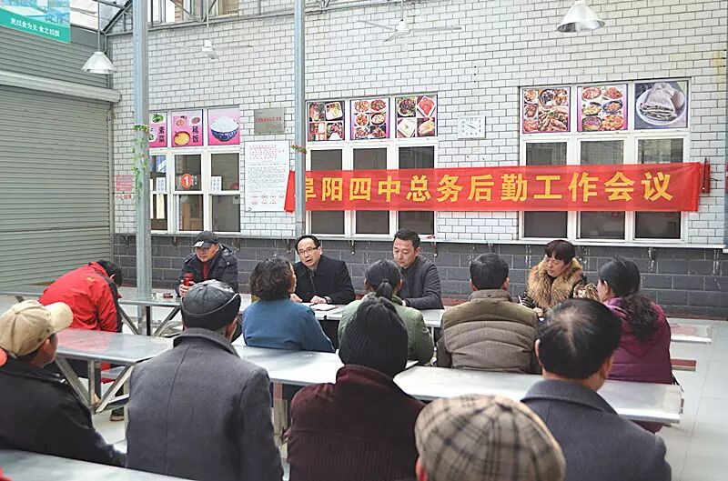 2月25日下午,阜陽(yáng)四中在校食堂現(xiàn)場(chǎng)召開(kāi)了總務(wù)后勤工作會(huì)議。 副校長(zhǎng)盛阜城、總務(wù)處主任連亞彬、副主任張炳榮、寧衛(wèi)亞及全體后勤人員參加了會(huì)議。會(huì)議由連亞彬主持。